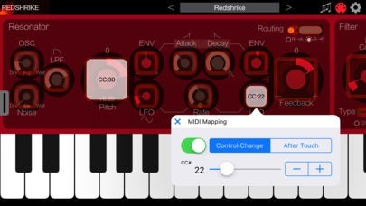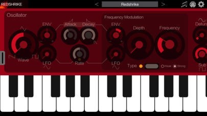 「Redshrike Synthesizer」は、スマートフォンを使ってFMオシレータと減算シンセンスを組み合わせたポリフォニックシンセサイザーを利用することができるアプリです。