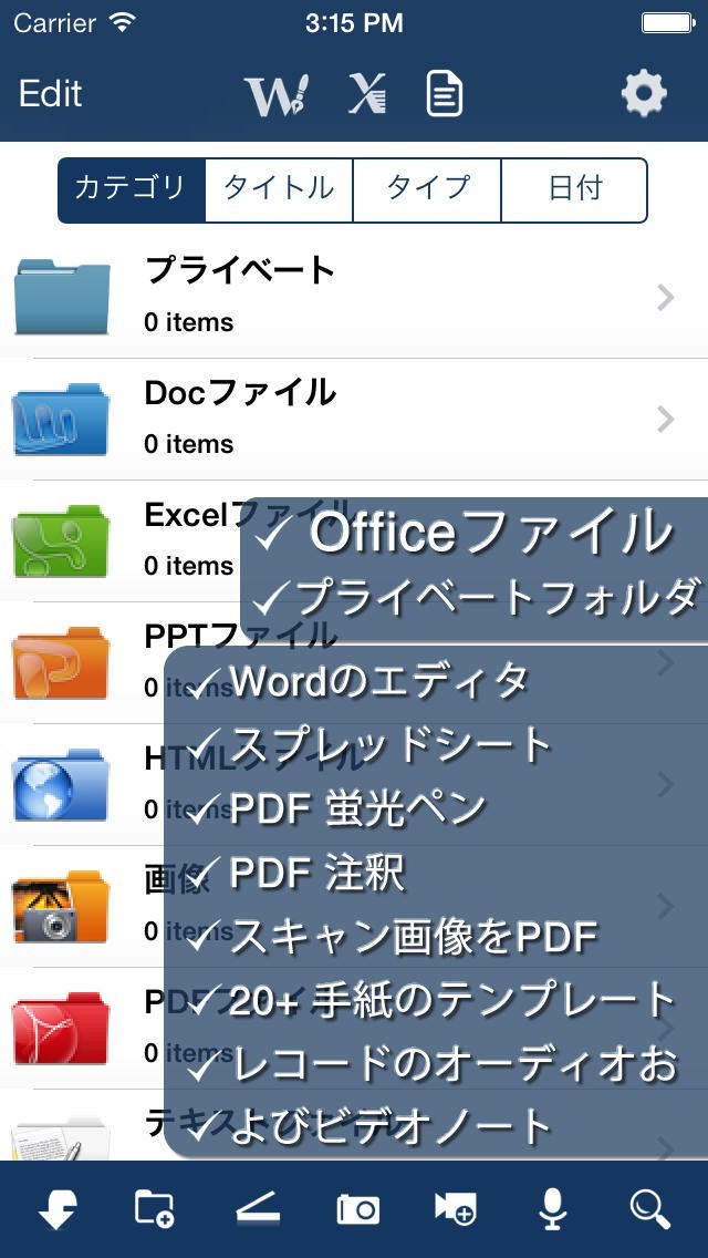 App Storeより引用Office Reader Proは、すべてのオフィス機能が一つになったMicrosoft Office社のOffice Suiteに加え、PDFアノテーション機能がついた高性能のアプリです。ワードや表計算ファイルの作成・編集はもちろん、書類の記入や書面に署名することもできます。