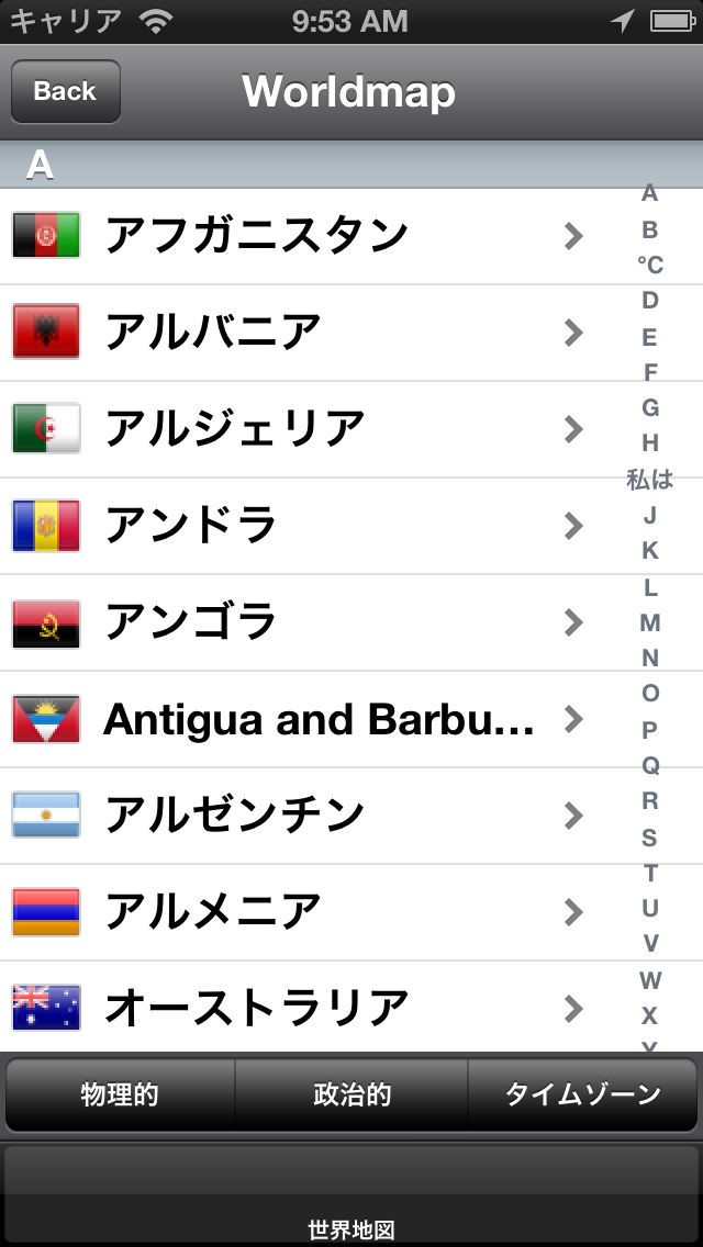 このアプリでは世界地図の名称当てと位置当てクイズを行う事ができ、世界の位置関係を勉強しようとしている人に非常にお勧めできるアプリです。2種類のクイズを一つのアプリで行う事ができるので便利です。