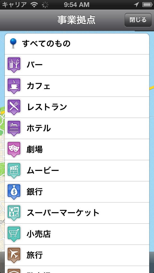 アプリでは表示しているエリアにあるバーやカフェ、レストラン、ホテルなどの商業施設を検索できます。地図を見ながら旅行気分を楽しんだり、実際に旅行する際の下調べとしても活用できます。