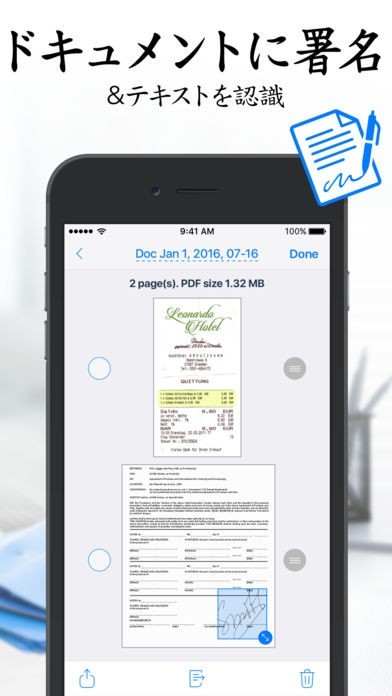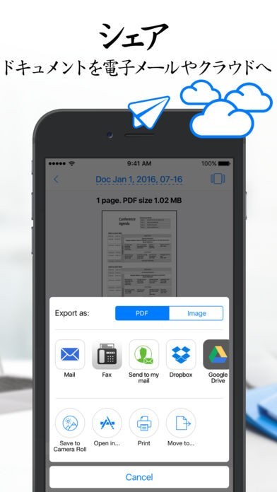 iScannerはカメラが搭載されたスマホなどを便利なスキャナーとして使うことができるアプリです。よくあるカメラアプリとどこが違うのかと思われるかもしれませんが、このアプリは撮影対象を認識すると、それだけを切り抜いて保存してくれます。レシート、名刺、FAX、その他書類形式のものをスキャンするのに非常に便利なのです。また保存フォーマットもJPEGだけでなく、マルチページのPDFを指定することもでき、署名も追加できます。また保存したデータのメール送信や共有、クラウドへのアップロードも簡単な操作で手軽に行えます。このアプリは、iPhoneでもAndroidデバイスでも使うことができます。