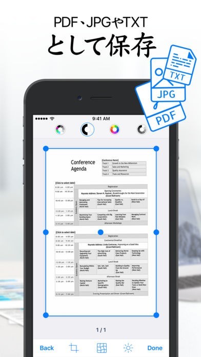 本の内容や重要なことが書かれた書類などをスマホに入れて持ち歩きたい時もあると思います。そこで役に立つのがこのアプリで、テキストデータであればPDFかJPEGに変換してどこにでも持ち歩くことができるようになります。