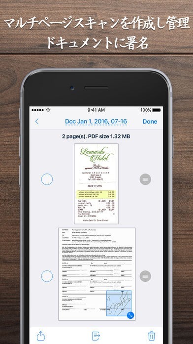OCRを使用したスキャンに対応しており、データや画像からテキストを抽出できます。また、スキャンしたデータに電子署名を追加することが可能です。大事な書類はパスワードやTouch IDでデータを守ることが出来ます。
