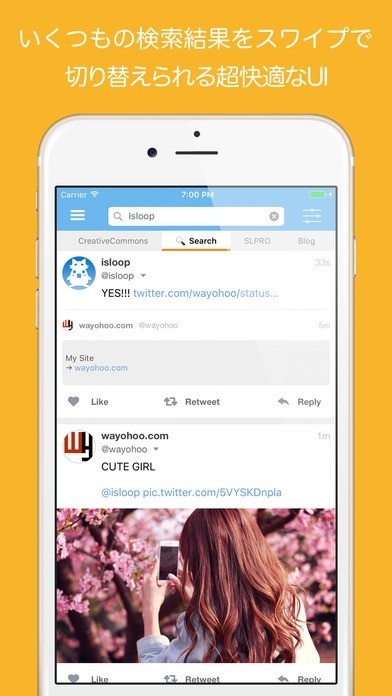 Twitterの検索が簡単にできるようになるアプリです。Twitterでは検索コマンドを使うことで検索の効率が良くなりますが、これらの検索コマンドをいちいち覚えておくのは大変です。クマコポーロなら検索キーワードを入力して、画像や動画などのコマンドを選択するだけで快適に検索することができます。 検索結果をタブに表示しておくことができるので、気になるキーワードはいつでもすぐに検索することができ、最新のツイートが見られます。