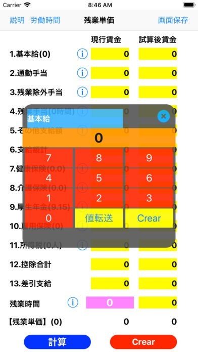 残業業手当の計算について、労働基準法に基づきシミュレーションができるアプリです。