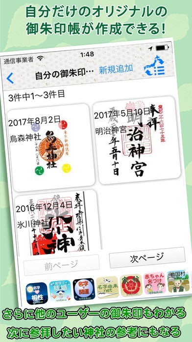 このアプリでは、神社参拝の記録を残すことができるだけでなく、自分だけのオリジナル御朱印帳を作成することができるので、どの神社に訪れたのか簡単に確認することができます。