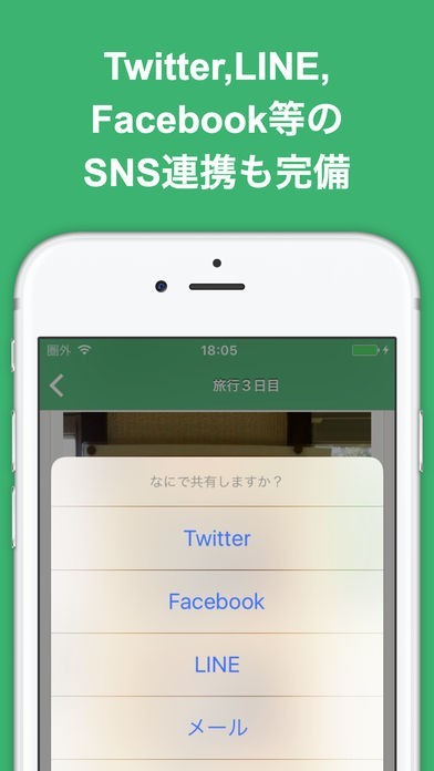 Twitter, Facebook, LINE等のソーシャル連携も万全!どんどんシェアしよう!