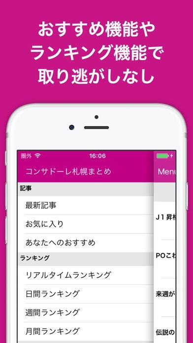 プロサッカークラブのコンサドーレ札幌のまとめ記事をスマートフォンからチェックすることができるアプリとなっていて、注目の記事をランキング形式で表示することもできます。