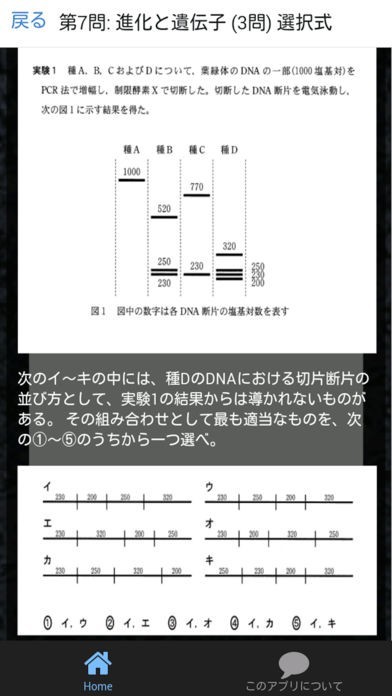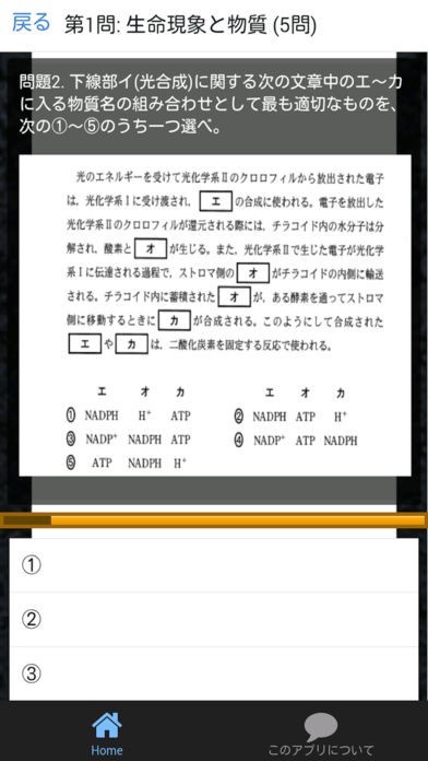 ※ 実際の問題では選択肢が9択まであるものもありますが、アプリのシステム環境の都合上、問題の選択肢は最大で5択までとなっております。