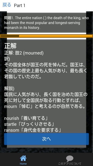 試験対策の中で最も有効な方法の一つが、過去問の攻略です。英検準1級の本試験も例外ではありません。このアプリは本試験の大問1の範囲に当たる内容を強化できるようになっています。各問題の解答には詳しい解説も付いています。正解することだけでなく、なぜ正解なのかを理解できるようにサポートしてくれます。一問一答のクイズ形式なので、気負うことなくマイペースに勉強できます。ちょっとしたスキマ時間をスマートに利用して、英検準1級の合格を目指しましょう。