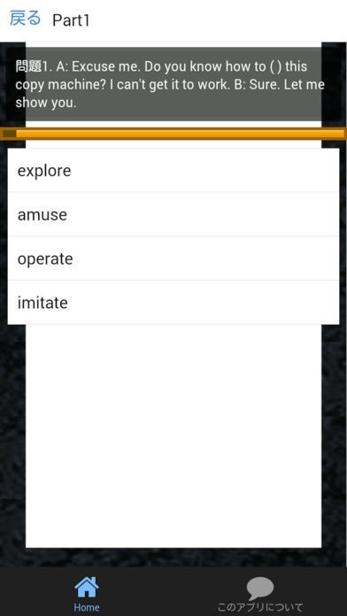 4択問題の出題機能を搭載した「英検2級 本試験問題」では、英検2級の過去問に挑戦することができます。総問題数は40問となっており、1パートは10問で区切られている他、1問につき50秒の制限時間を設定。さっと取り出して問題に挑戦することができるため、通勤通学の隙間時間を学習に生かすことができるでしょう。正解サウンド機能も用意。正解の選択肢をタップすると、軽快な音でお知らせしてくれるのも嬉しいポイントとなっています。さらに解説機能では出題された英文の内容説明や、単語を抜き出しての解説を掲載。しっかりと解説を確認することで、苦手問題の克服に役立ててみてはいかがでしょうか。