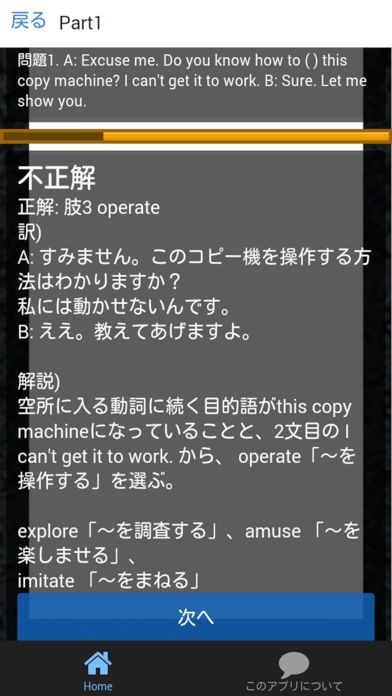 答えをタップするだけ。単語の意味や解説も教えてくれるので分かる