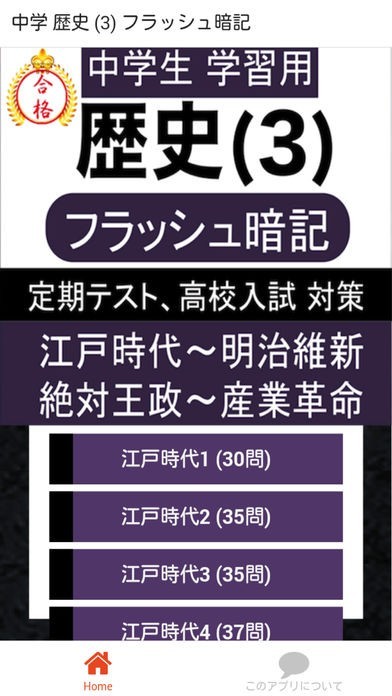 中学生が、高校受験や定期テストに向けて、ポイントを押さえてなるべく楽に、歴史を勉強することを目的として作成したアプリです。