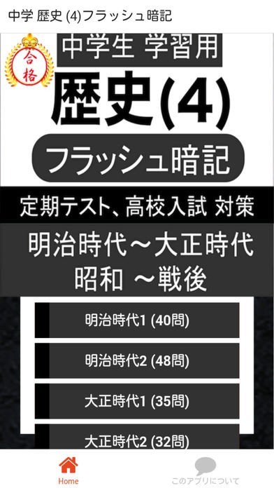 中学生が、高校受験や定期テストに向けて、ポイントを押さえてなるべく楽に、歴史を勉強することを目的として作成したアプリです。