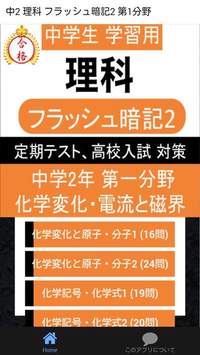このアプリでは分野別に中学2年生が学ぶ理科の問題を173問用意しました。