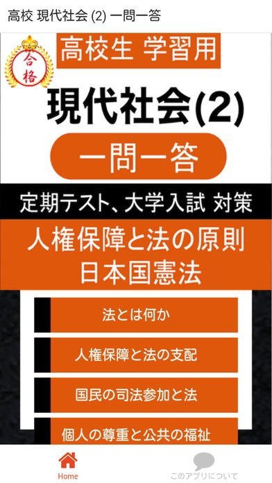 現代社会を学ぶ高校生が、定期テストや大学入試に向けて、ポイントを押さえてなるべく楽に勉強することを目的として作成したアプリです。