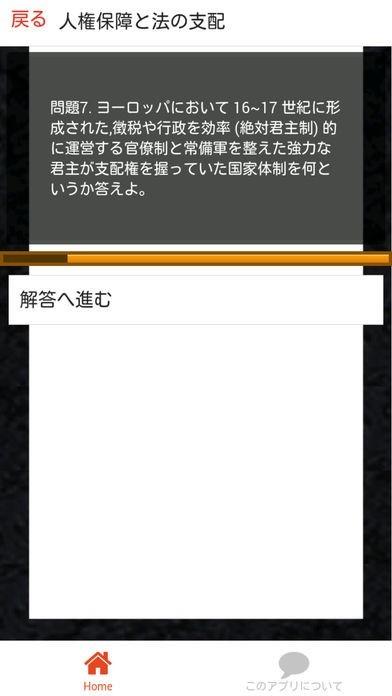 このアプリでは分野別に現社の問題を80問用意しました。