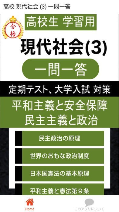 現代社会を学ぶ高校生が、定期テストや大学入試に向けて、ポイントを押さえてなるべく楽に勉強することを目的として作成したアプリです。
