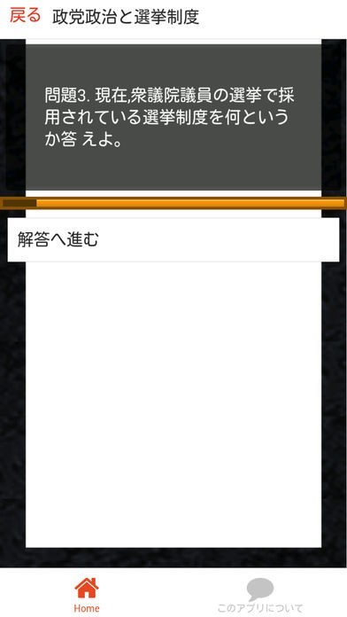 このアプリでは分野別に現社の問題を110問用意しました。