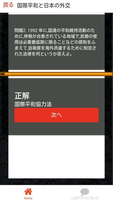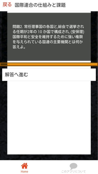 このアプリでは分野別に現社の問題を120問用意しました。