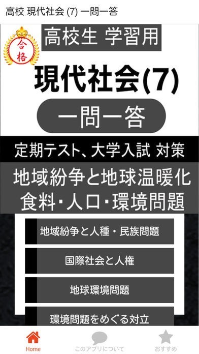 現代社会を学ぶ高校生が、定期テストや大学入試に向けて、ポイントを押さえてなるべく楽に勉強することを目的として作成したアプリです。
