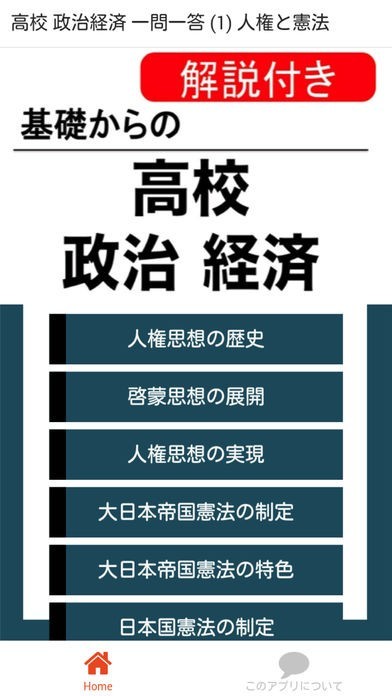 政治 経済を学ぶ高校生が、定期テストや大学入試に向けて、ポイントを押さえてなるべく楽に勉強することを目的として作成したアプリです。