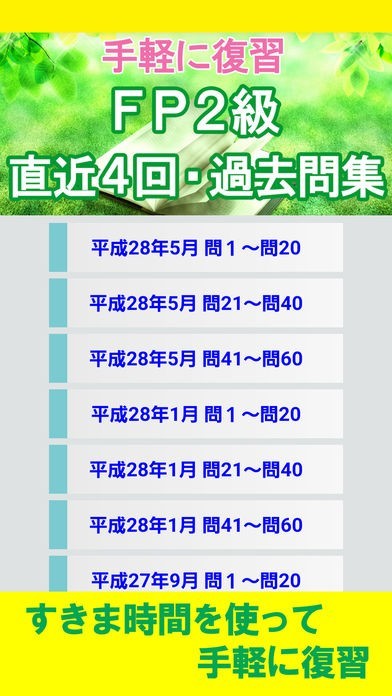 手軽に復習・FP2級 過去問集は、ファイナンシャルプランナーを目指す皆様に、スキマ時間を使って、ご自身のテキストの理解度をチェックしたり、復習をして頂ただく為のアプリです。