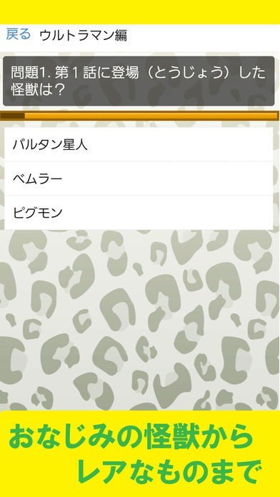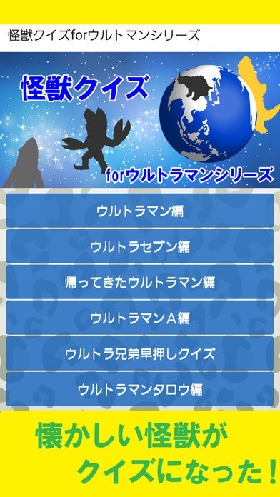 App Storeより引用ウルトラマンシリーズに登場する怪獣をクイズにしました。