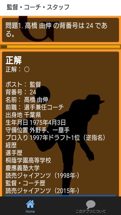 プロ野球背番号クイズ for 読売ジャイアンツのスクリーンショット