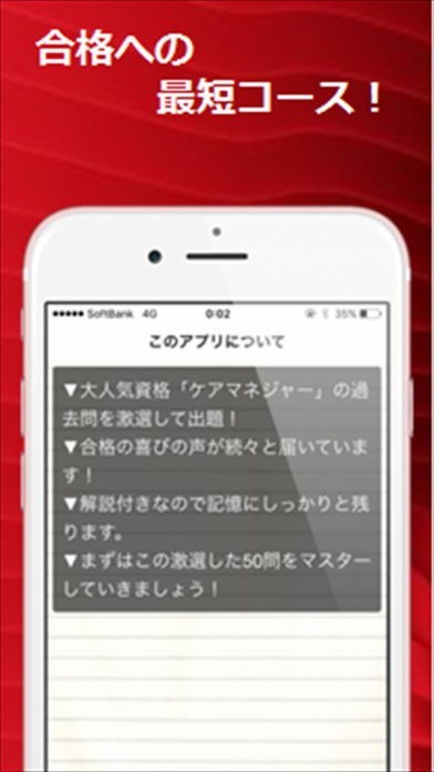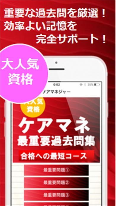 App Storeより引用▼大人気資格「ケアマネージャー介護支援分野」の過去問を厳選して出題!