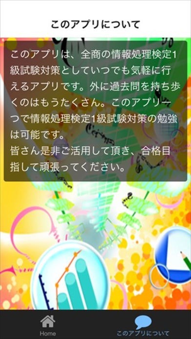 App Storeより引用このアプリは、全商の情報処理検定1級試験対策としていつでも気軽に行えるアプリです。外に過去問を持ち歩くのはもうたくさん。このアプリ一つで情報処理検定1級試験対策の勉強は可能です。