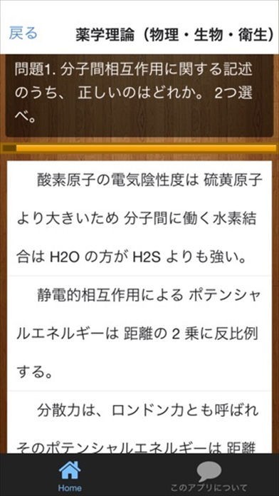 App Storeより引用このアプリは薬剤師の国家試験対策用の過去問の薬学理論問題集です。