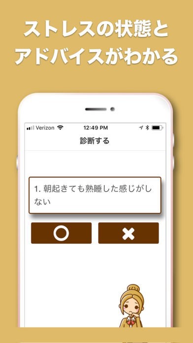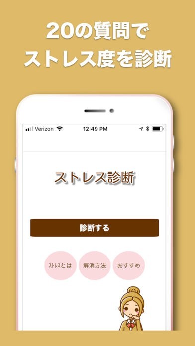 「ストレス診断 学生用」は、簡単な20の質問に○×形式で答えていくだけでストレスの状態を把握することができるアプリです。 ストレスを診断するだけでなく、結果にはストレスへのアドバイスも一緒に表示されるので溜まったストレスをそのままにせず解消へと導く手助けもしてくれます。 9つのストレス解消法と2つのおまじないが収録されています。