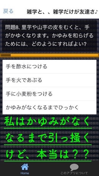 あなたが持っている「どこで役に立つのかわからない雑学」を役立たせるために、「どこで役に立つのかわからない雑学」を集めたのクイズアプリです。