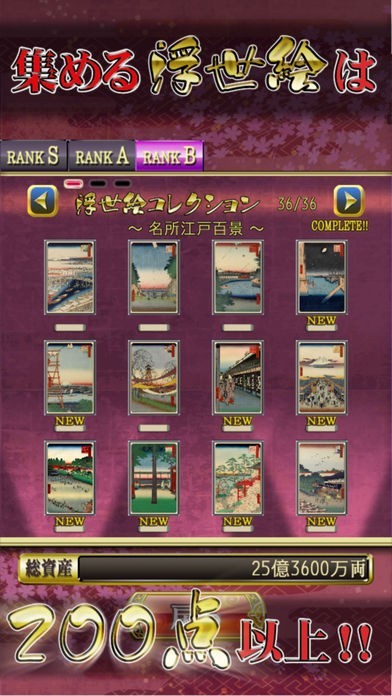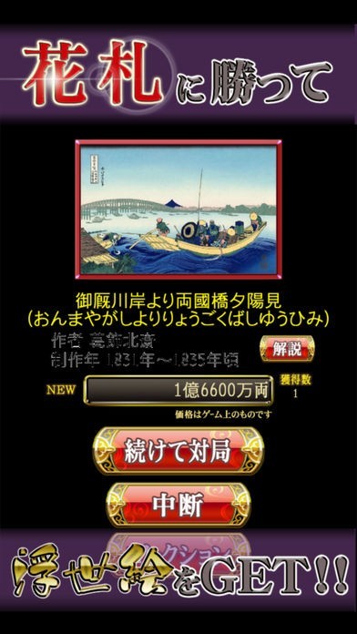 自動セーブ機能も付いており、中断・再開がいつでもできます。気軽に遊べるので、暇つぶしにも最適です。勝負に勝つと浮世絵をゲットできるので、全200種類コンプリートを目指しましょう!
