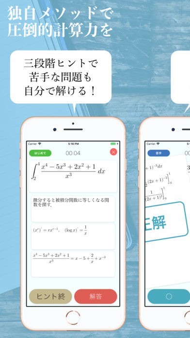 このアプリでは、それぞれの定積分の問題について、三段階に分けてヒントを見ることができるので、解き方がよく分からなくてもヒントを見ながら答えを導くことができます。