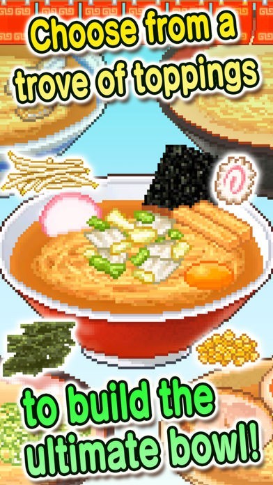 好きなトッピングを選び、オリジナルラーメンを作ってください。ゲーム内に登場する材料は数多くあるので、良く考えて組み合わせを決めましょう。完成したラーメンはお客に出すことができます。