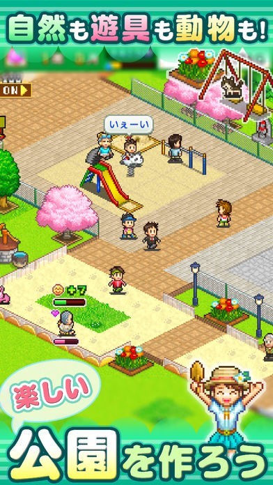 公園作りとても楽しいです。遊具や動物、飲食エリアなどいろいろと作れる要素も豊富で楽しいです。