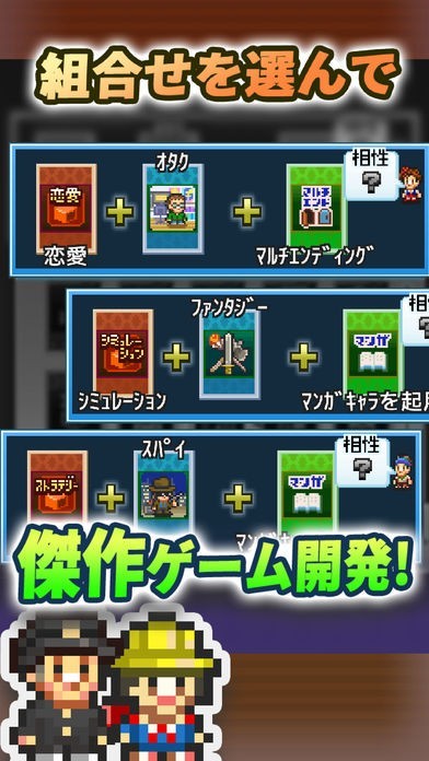 小さな会社を舞台に、自分だけのオリジナルゲームの制作を楽しむことができます。種類も豊富に用意され、且つ手軽に進められるため、ゲーム好きに限らず気軽に楽しめるのが特徴です。