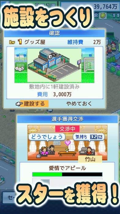 リアルなチームの経営者のように育成施設を増やしたり改築したり決定できます。勝利により便利な施設を入手するためのアイテムが増えるのでチームの強さと連動してベースとなるレッスン用建物を強化可能です。