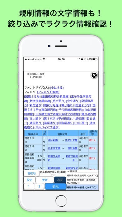 簡単に渋滞情報が調べられる仕様!