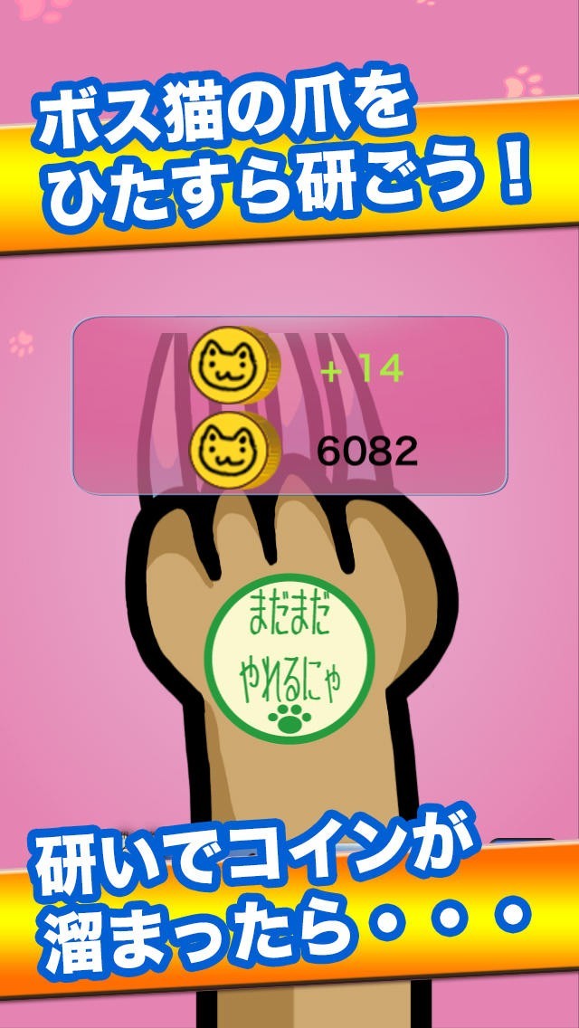 台湾のApp Storeでランキング上位を記録した人気ゲームです。猫の爪を研いでいくリズムゲームになっています。上から落ちてくる左右の肉球マークをタイミングよく両手でタップすることでコンボを長く続けていきます。100コンボを超えると落ちてくるスピードが上がって難しくなります。 爪を研ぐとコインも貯まっていき、コインで衣装を買って猫に着させることができます。 Game Centerで世界中のプレーヤーとコンボ数の世界ランキングを競うことも可能です。