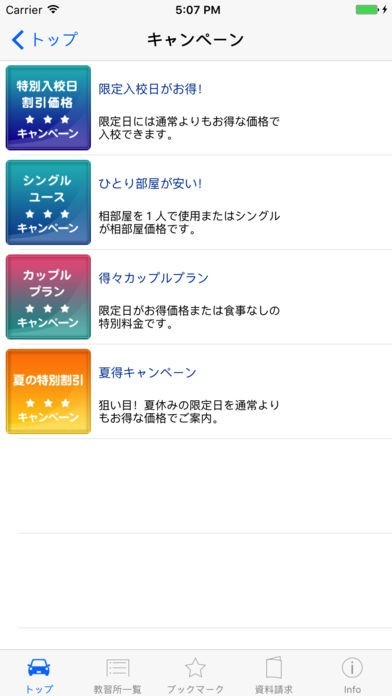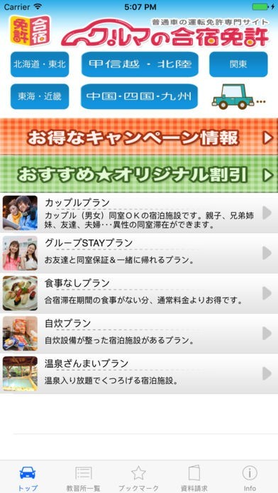 普通自動車免許の合宿教習の情収集から予約まで、このアプリ1つで用が済みます。
