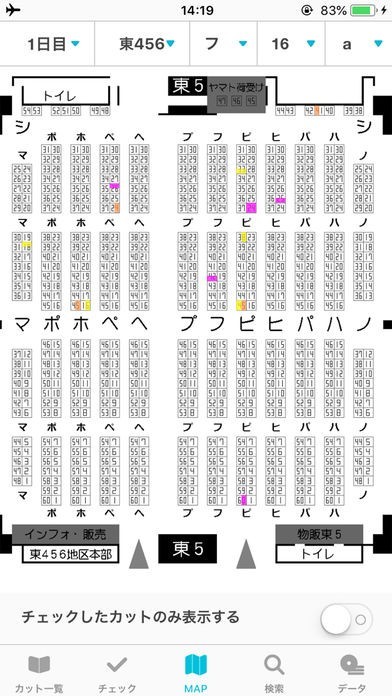 様々なエリアに点在するサークルの情報や位置を随時確認できるので、SNSなどを活用した情報収集と並行して活用することができます。壁サーや島などの計画を立てるのにも最適です。