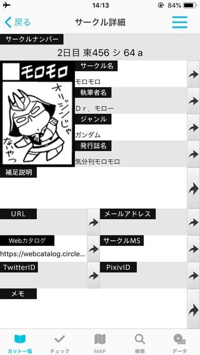 DVDやwebデータをスマートフォンに読み込むことで、手間をかけずにサークルのマップや特徴などをスマホ内に表示することができます。手動での入力にも対応しております。