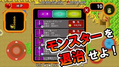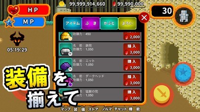 オーソドックスで一般的ななオンラインアクションMMOです。 キャラも背景も派手さは全く無いので、昔のレトロ風アクション好きな人向けのゲームです。 他のMMOとの差異は、主人公勇者が悪徳ギルドに所属して借金を背負い、借金返済のためノルマが課せられている社畜となっていることです。 ノルマを達成することに喜びを感じる人にはうってつけのゲームといえます。 遊び方も難しくなく、武器と防具で自キャラを強化しつつ敵を倒すことでミッションをクリア、強敵には他のプレイヤーと協力して戦います。 シンプルな画像なので負荷も少なく軽快な動作ができます。 操作方法は左下の赤い丸レバーをタップで上下左右に移動、右下の青と黄のボタンタップで通常攻撃と必殺技です。 左上の赤と青のゲージはそれぞれHPとMP、画面下段にはマップ・装備・ストア・ノルマ・チャット・機能のメニューが並びます。 ノルマは次から次へと出され、ブラック企業に勤めるの一端を社畜を経験できるゲームです。