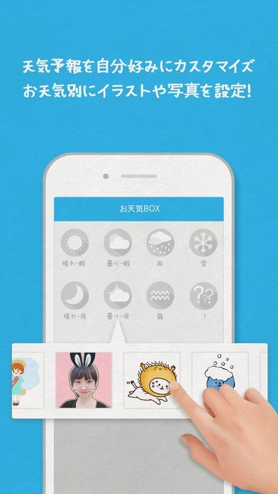 自分だけのオリジナルキャラクターアイコンで天気をお知らせ!