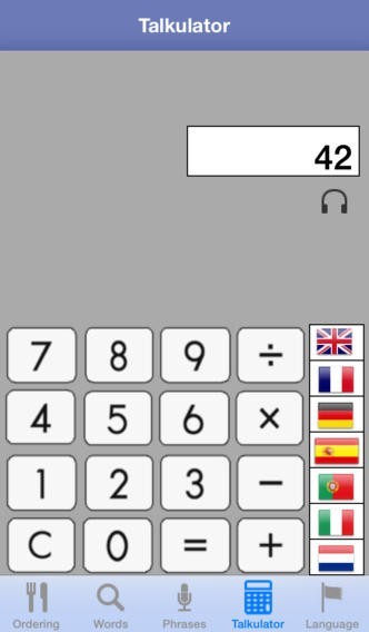 App Storeより引用Eat everywhere and order food in 8 major languages. What is on the menu? How to pronounce the words? Let the iPhone speak for you! Shop abroad. Know what to order. Search the dictionary and find the native terms that locals use. Translate your menu for tourists, cook international cuisines. Communicate globally about food! Very practical on holidays, and indispensable for travel in Europe. Includes key phrases for reservation, etc.