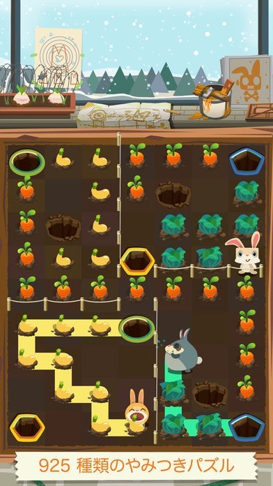 「Patchmania - ウサギさんの仕返しパズル!」では、お家を壊されたウサギさん達が仕返しのため大活躍。畑に通り道を作り、農夫が作ったニンジンなどの野菜を食べていくパズルゲームとなっています。アニメーションで動くウサギさん達が可愛らしく、ユニークな動きは癒し効果も抜群。困った時にはヒント表示もできるなど、パズルがあまり得意でない人にも嬉しい仕様を多数搭載しています。iCloudと同期を行えば、クリアステージなどの記録を維持したまま他のデバイスで遊ぶこともできます。