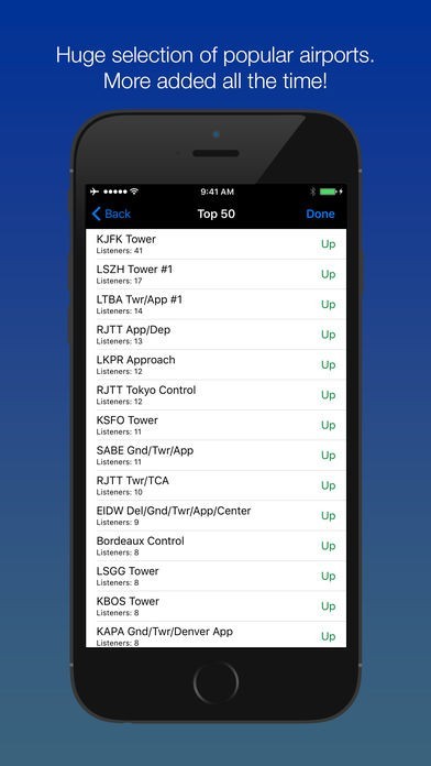 管制塔と飛行機の間でやり取りされているリアルタイムな航空無線をiPhoneで簡単に聞くことが出来るようになっているので、飛行機好きにはたまらないアプリとなっています。